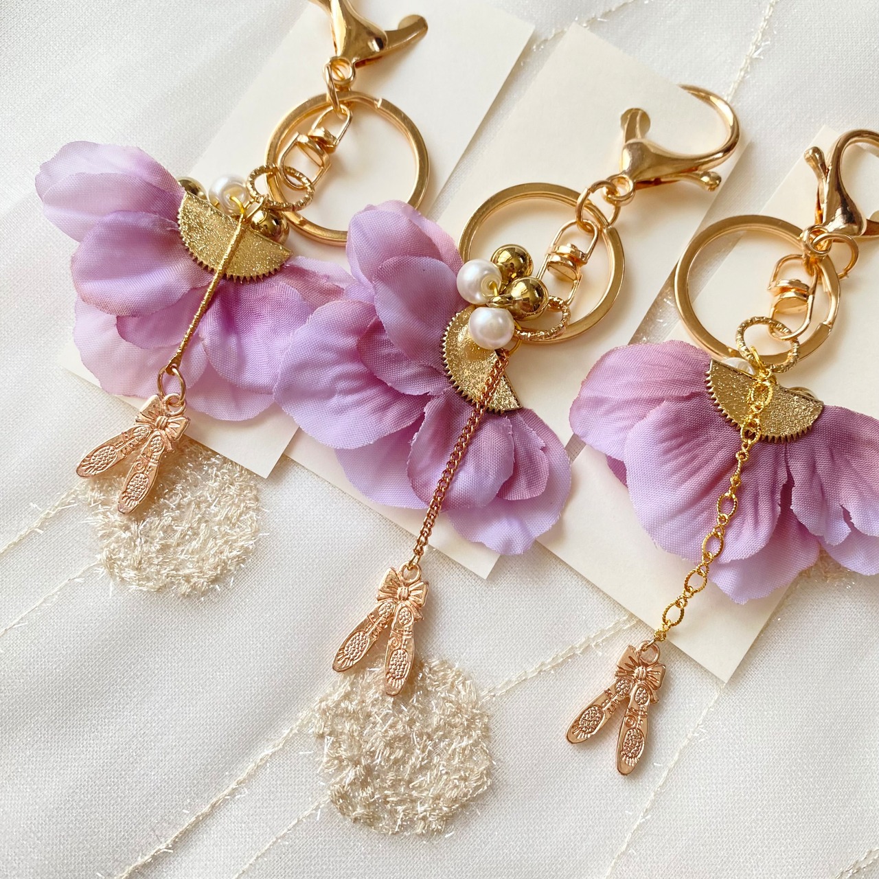 トゥシューズを繋いでいるチェーンがちょっとずつ違うのでお好みに合わせてお選びください